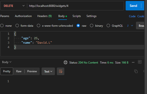 eemaldamiseks kasutame “DELETE” ja pärast kirjutab mida me tahame kustuta http://localhost:8080/widgets/kirjuta siin