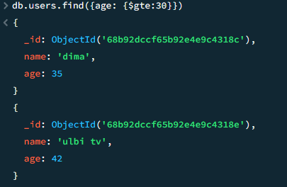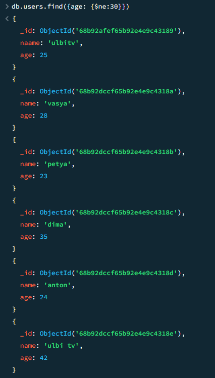 $lt, $gt, $lte, $gte, $ne, väiksem kui, suurem kui, võrdne, mitte võrdne