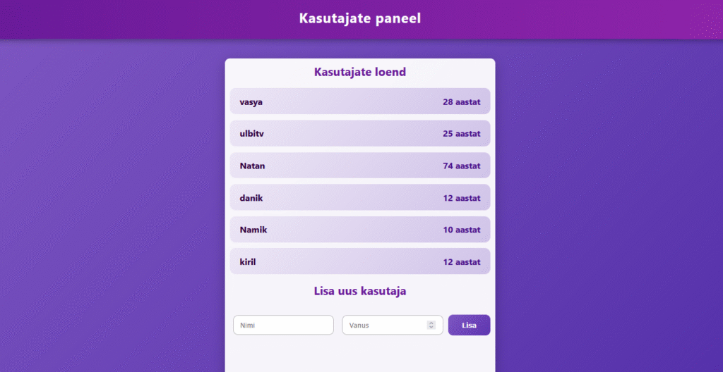 Kasutajate eesnimi on asendatud perekonnanimega.