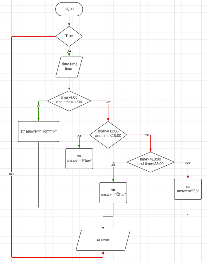 Koostage skeem ülesande kohta, mis võimaldab määrata kellaaja näitude järgi ööpäeva.