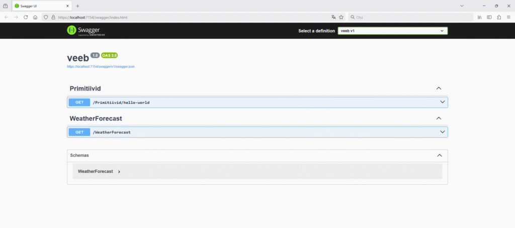 Loome kontrolleri malli ning võimaldame kasutada ka Swaggerit (OpenAPI).