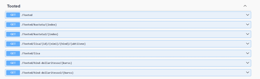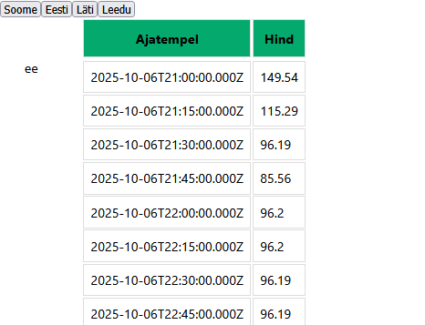 - Eesrakendus soovib API otspunkti konfigureerida selliseks, et saadetakse kaasa “ee”, “lv”, “lt” või “fi” parameeter ning näidatakse selle riigi hindasid. Teeme.