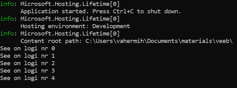 - Väljastab konsooli logisõnumeid määratud arv kordi.