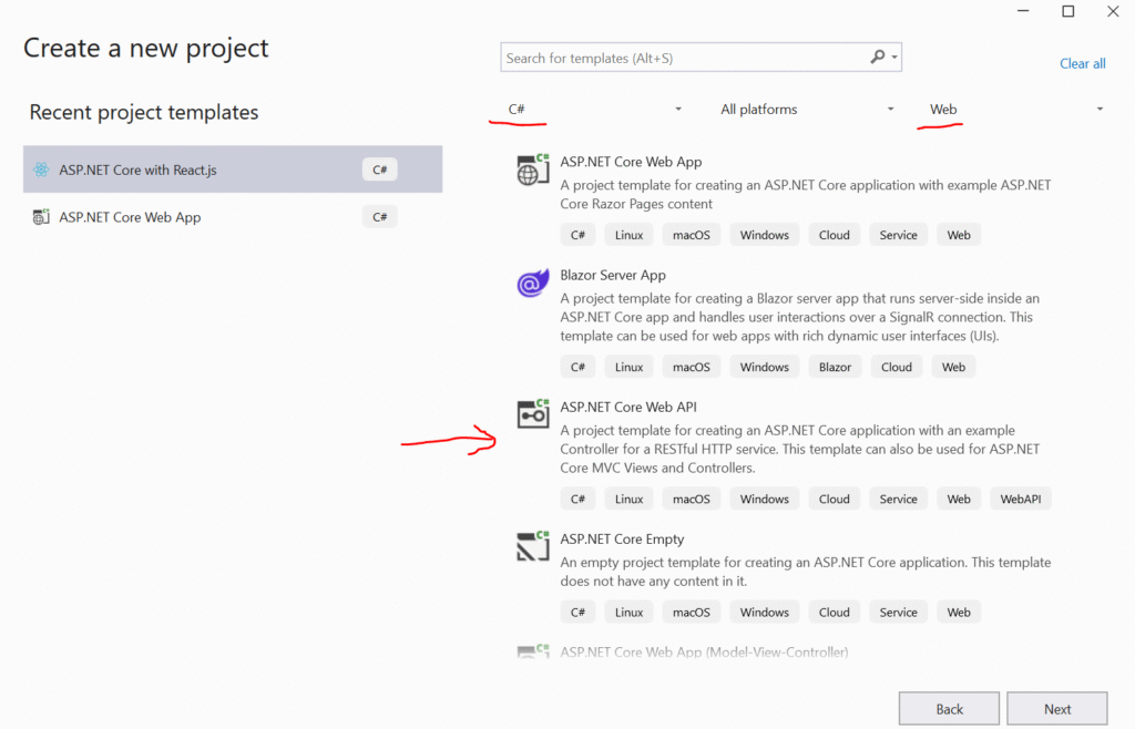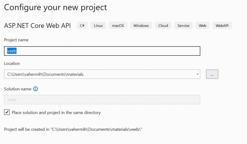 Saame valida, millist juba valmismalli kasutame. Võtame juba loodud kontrolleri koos API otspunktiga.