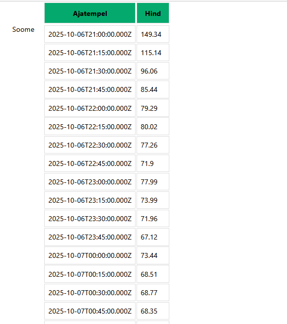 2. Eesrakendus näitab kuupäevasid peale vajutades näidatakse selle kuupäeva hindasid. Meie ülesanne on eesrakendusel seda võimaldada, võttes eesrakendusest vastu kuupäeva ning saate selle Elering API otspunktile.