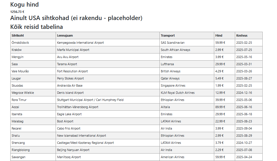 <h2>Ainult USA sihtkohad (ei rakendu - placeholder)</h2>